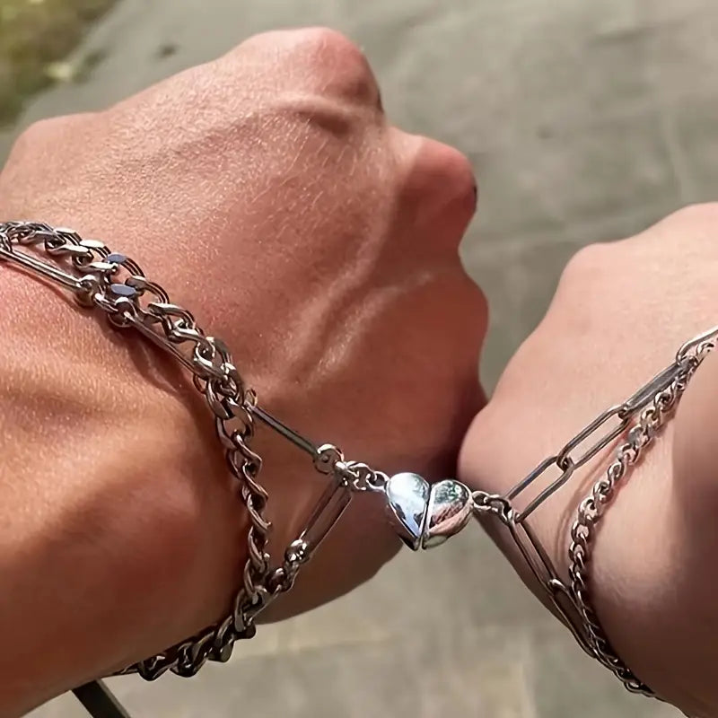Βραχιόλια Ζευγαριού με Μαγνητική Καρδιά