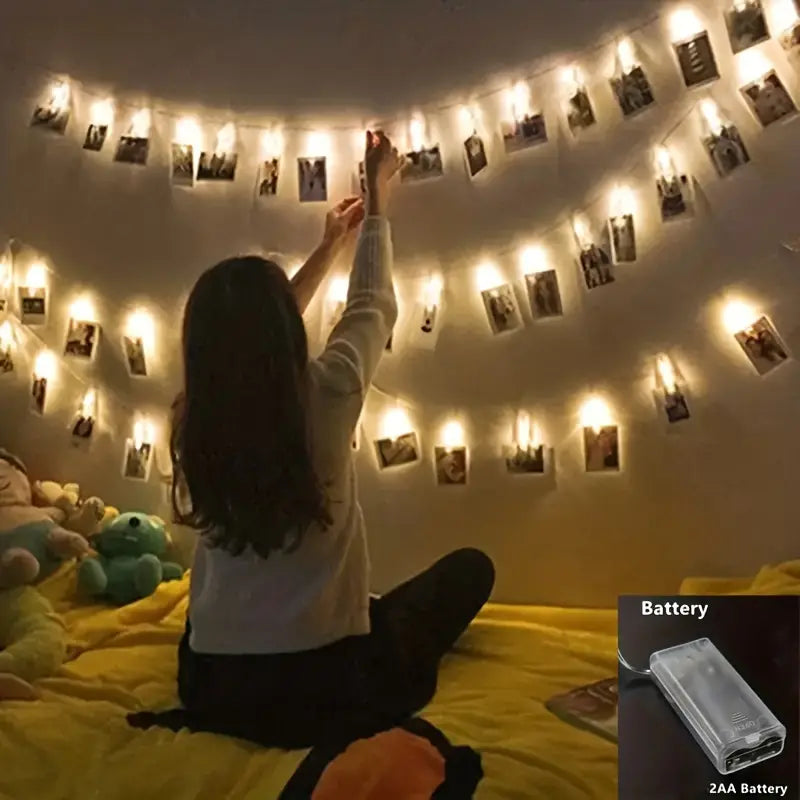 Αυτά τα διακοσμητικά φωτάκια με κλιπ είναι ιδανικά για να κρεμάσεις φωτογραφίες, κάρτες ή ρομαντικά σημειώματα. Λειτουργούν με μπαταρίες και φωτίζουν απαλά, δημιουργώντας cozy και ζεστή αίσθηση στο χώρο.