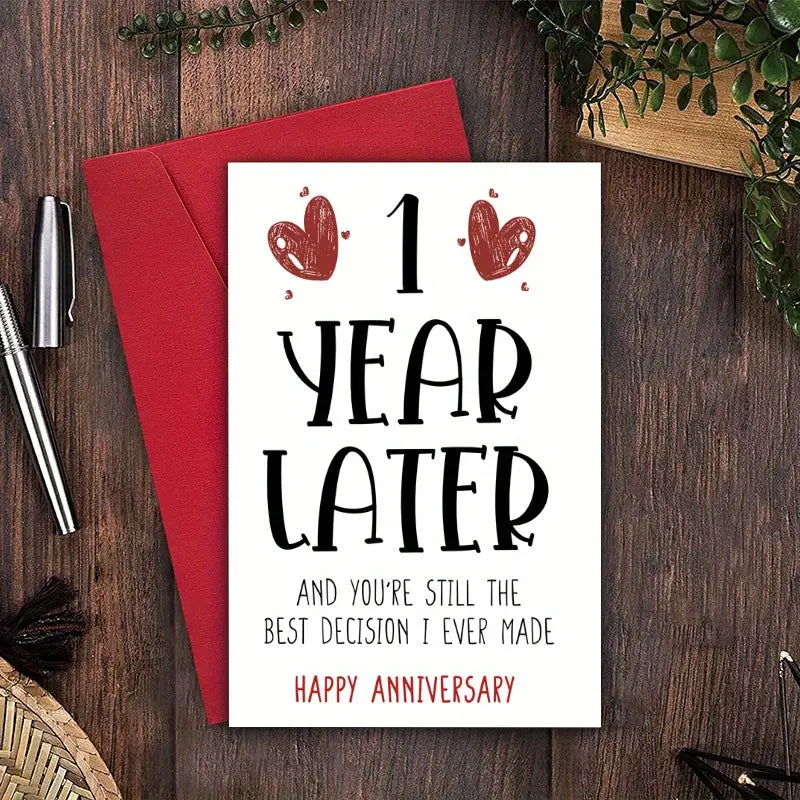 Χιουμοριστική και τρυφερή κάρτα για να γιορτάσετε την 1η σας επέτειο με στυλ και χαμόγελο. Ιδανική για να δείξεις την αγάπη σου με έναν παιχνιδιάρικο τρόπο!